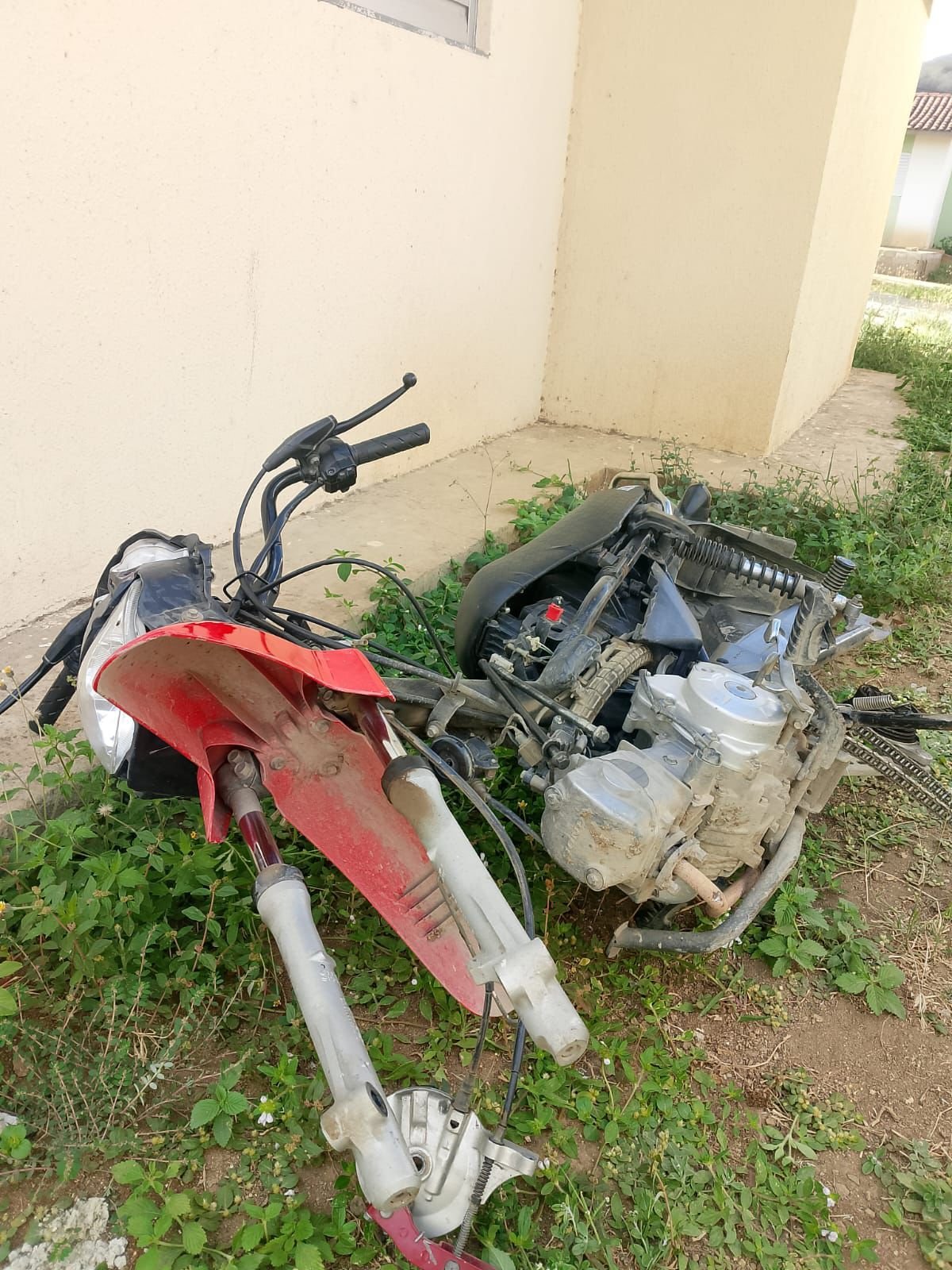 Motocicleta é desmanchada na porta de residência no Residencial Cruzeiro, no bairro Palestina
