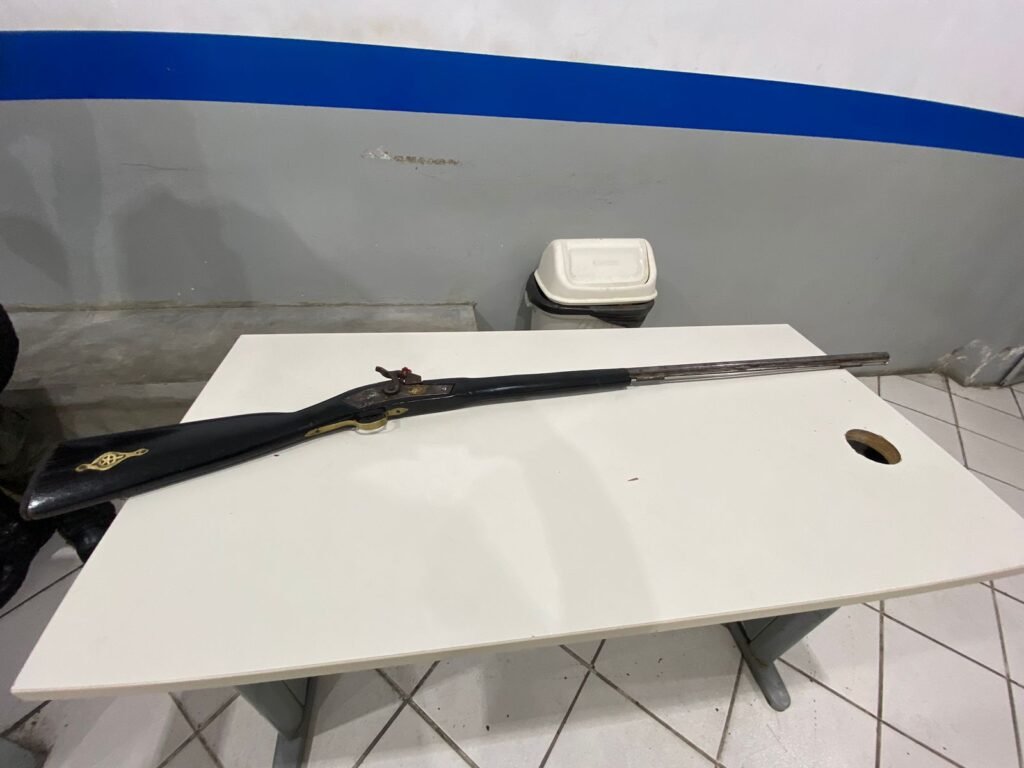 Uma espingarda artesanal foi apreendida após moradores relatarem disparos de arma de fogo na localidade conhecida como Sítio São João, no município de Toritama, no Agreste de Pernambuco.