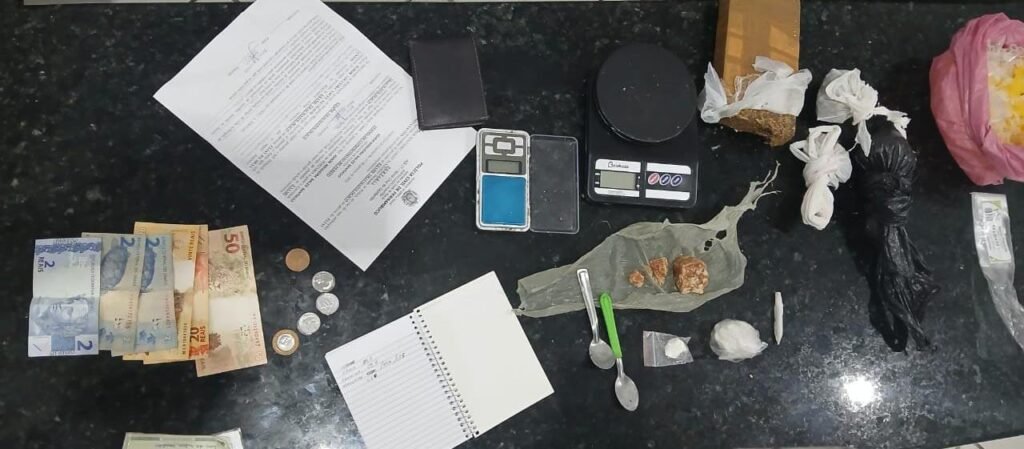 Ainda no imóvel, foram apreendidos aproximadamente 39 gramas de crack, 29 gramas de cocaína, duas balanças de precisão e a quantia de R$ 100 em espécie, materiais que, segundo a polícia, são comumente utilizados no tráfico de entorpecentes.
